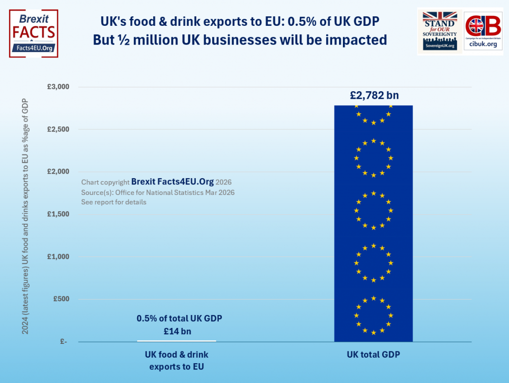 The UK’s exports of food and drink to the EU in fact represent just 0.5% of UK GDP.